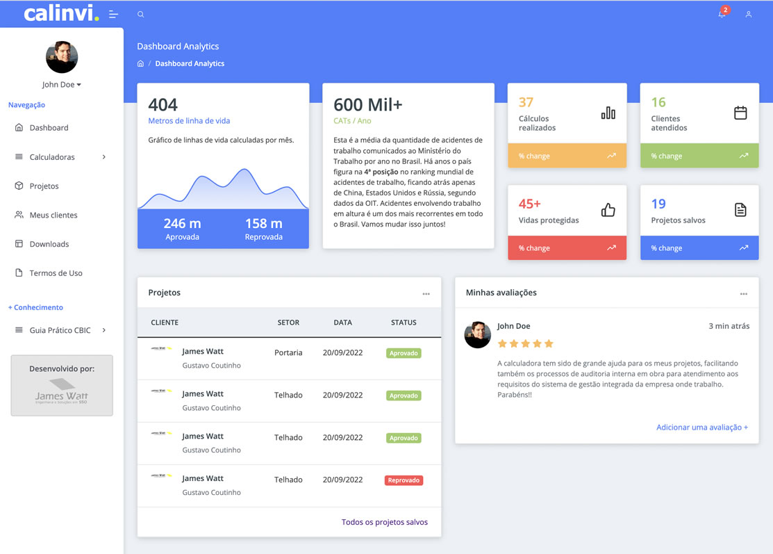 Observação 1: O referencial teórico-bibliográfico utilizado como base para a construção da Calinvi é diverso à JAMES WATT ENGENHARIA, sendo disponibilizado por entidades como a Câmara Brasileira da Indústria da Construção (CBIC), a Confedereção Nacional das Indústrias (CNI) e o Serviço Social da Indústria (SESI). Para o desenvolvimento da Calinvi, fez-se uso do "Guia Prático para Cálculo de Linha de Vida e Restrição para a Indústria da Construção", publicado em 2017 e disponível no site da CBIC (https://cbic.org.br), que diz "Qualquer parte desta obra poderá ser reproduzida, desde que citada a fonte". A obra é de autoria de José Carlos de Arruda Sampaio e Wilson Roberto Simon.